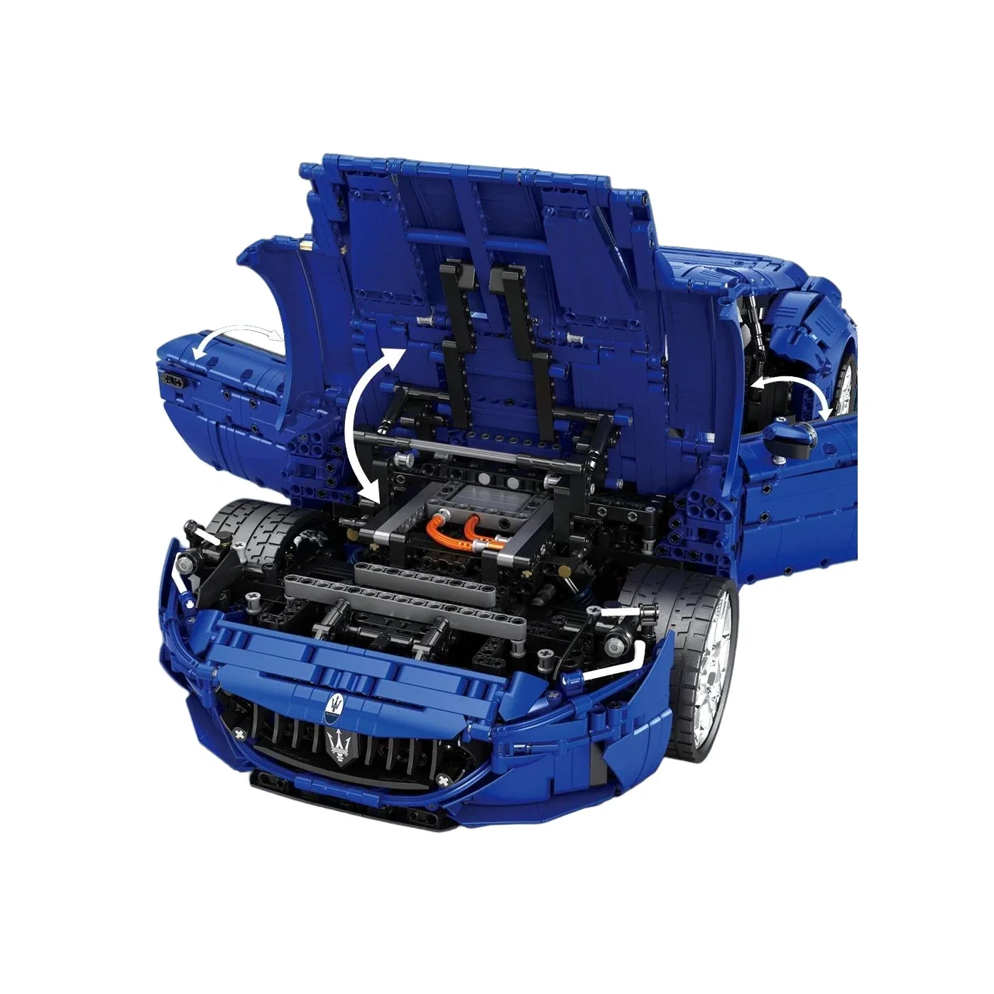 Wysokiej jakości klocki konstrukcyjne dla dzieci od czternastego roku życia. Zestaw składa się z 5480 elementów, z których zbudować można niebieskie auto Maserati w skali 1:8. Ten wspaniały model samochodu z pewnością przyciągnie uwagę swoimi detalami. Pojazd ma szczegółowo odwzorowane wnętrze, otwierane drzwi boczne i maskę.