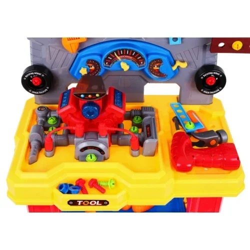 Warsztat z silnikiem dla dzieci 3+ Dźwięki Światła + Narzędzia + Akcesoria + Stolik majsterkowicza