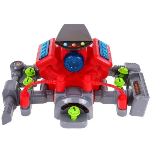 Prócz narzędzi w zestawie znajduje się również silnik zasilany na baterie wydający odgłosy i posiadający efekty świetlne oraz panel z atrapą mierników samochodowych.